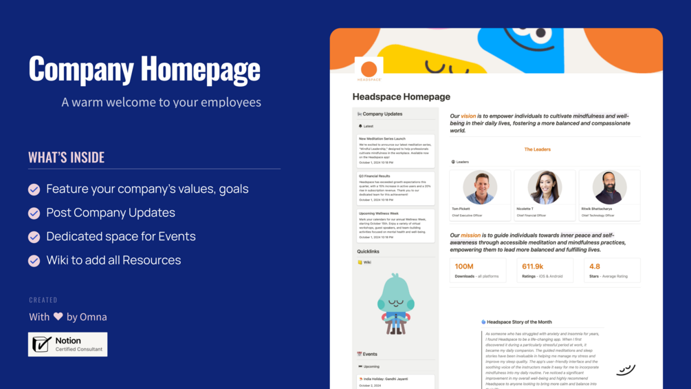 Welcome to your company’s new home in Notion — inspired by the calm and clarity of Headspace! 🧘♀️✨