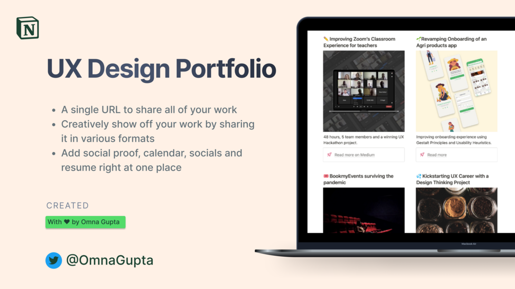 Ready to upgrade your UX portfolio and land more job offers? Get our UX Design Notion Portfolio template today and watch your career take off! π