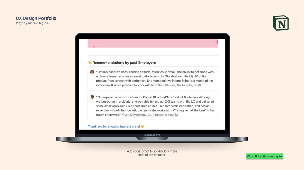 Join over 1000 happy customers who have used our UX Design Notion Portfolio template to boost their career prospects! Are you ready to get more job offers?