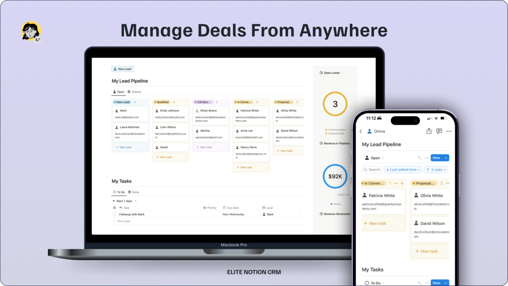 Unlike traditional CRM software that takes weeks to implement and months to master, the Elite Notion CRM template can be up and running in under 30 minutes.