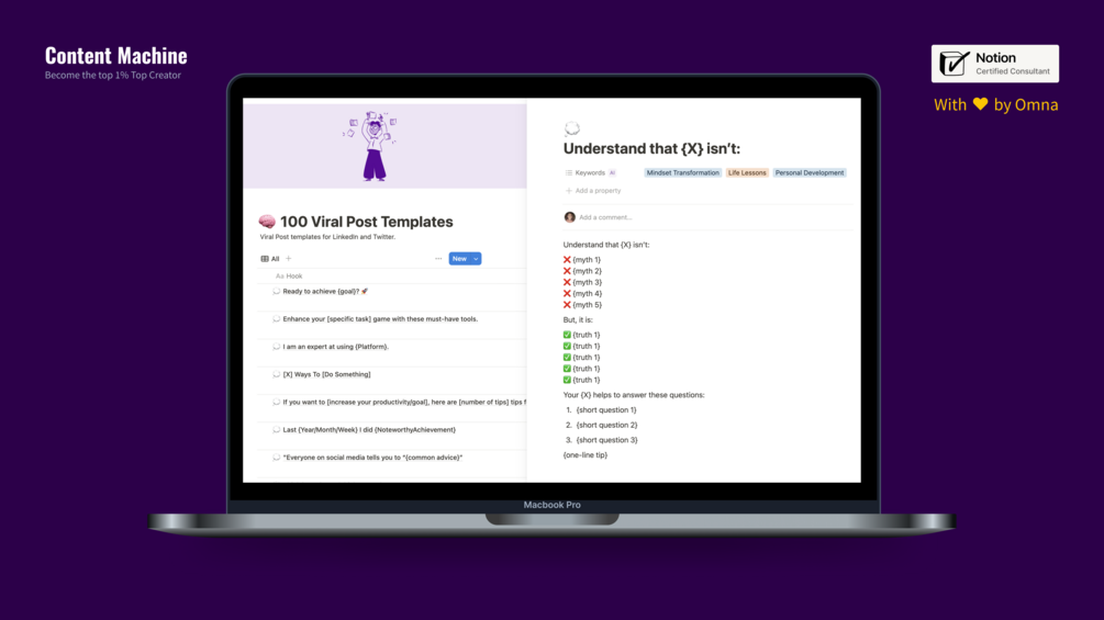 - Bonus #2: 100 Viral post templates for Linkedin & Twitter